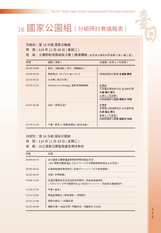 16 國家公園組 ( 分組研討會議程表 )