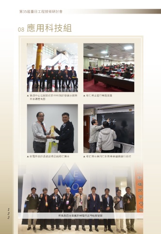 08 應用科技組 ▶ 軍通中心江副主任於中科院研發展示館與 ▶ 和仁博士進行專題演講 日本講者合影 ▶ 材電所翁所長致送禮品給和仁博士 ▶ 和仁博士與同仁針對專業議題進行研討 1 0 0 所長與日方來賓於材電所正門拍照留影