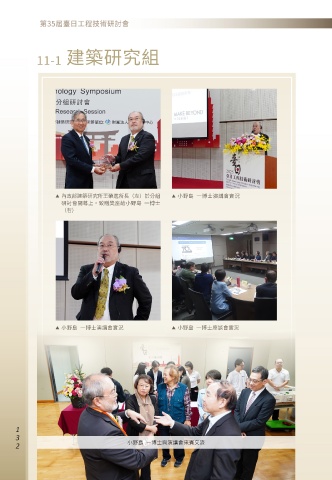 11-1 建築研究組 ▶ 內政部建築研究所王榮進所長(左)於分組 ▶ 小野島 一博士演講會實況 研討會開幕上,致贈奬座給小野島 一博士 (右) ▶ 小野島 一博士演講會實況 ▶ 小野島 一博士座談會實況 1 0 0 小野島 一博士與演講會來賓交流