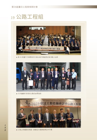 19 公路工程組 ▶ 第 35 屆臺日工程技術研討會公路工程組研討會活動大合照 ▶ 日方講師於交通部公路局合照留影 1 0 0 ▶ 公路工程組歡迎晚宴 - 致贈日方講師獎牌及伴手禮
