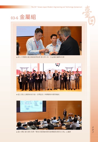 03-6 金屬組 ▶ 圖 1 中鋼劉宏義技術副總與長坂 徹也博士等一行金屬組講師相見歡 ▶ 圖 2 臺日工程技術研討會 - 合照留念 ( 中鋼總部大樓演講廳 ) 0 0 ▶ 圖 3 長坂 徹也博士發表「基本金屬關鍵資源流動問題及其解決方案」之演講 0