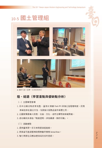 1. 日本公園法制改革完整,臺灣可借鏡 Park-PFI 與指定管理者制度。民間