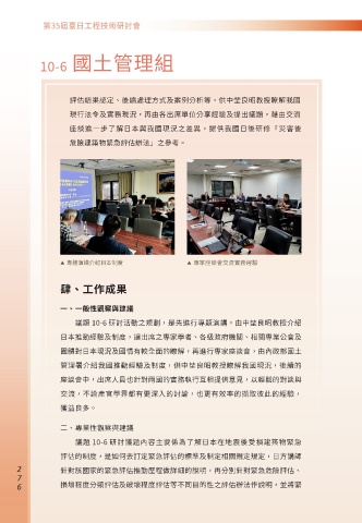 議題 10-6 研討議題內容主要係為了解日本在地震後受損建築物緊急