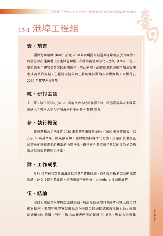 實績、LNG 冷能利用成果、港灣排放份額分析、e-methane 技術進展等。