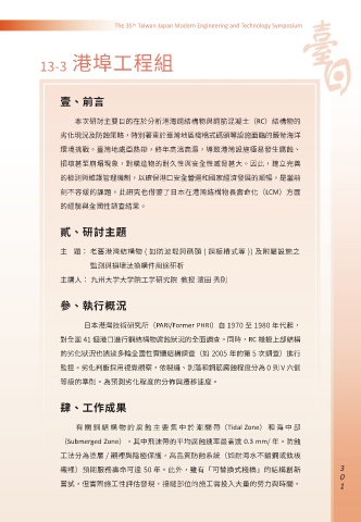 主 題: 老舊港灣結構物 ( 如防波堤與碼頭 ( 鋼板樁式等 )) 及附屬設施之