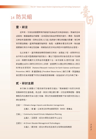 本次第 35 屆臺日工程技術研討會防災組以「氣候變遷下的防災科技