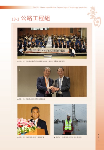 19-2 公路工程組 ▶ 照片 1:日本講師與公路局林福山局長、貴賓及全體與會者合影 ▶ 照片 2:公路局林福山局長致贈獎座 0 ▶ 照片 3:土橋 浩先生進行專題演講 ▶ 照片 4:土橋 浩先生至淡江大橋參訪 0 0