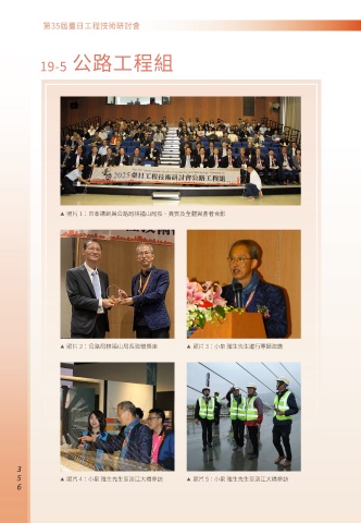 19-5 公路工程組 ▶ 照片 1:日本講師與公路局林福山局長、貴賓及全體與會者合影 ▶ 照片 2:公路局林福山局長致贈獎座 ▶ 照片 3:小泉 雅生先生進行專題演講 0 0 ▶ 照片 4:小泉 雅生先生至淡江大橋參訪 ▶ 照片 5:小泉 雅生先生至淡江大橋參訪 0